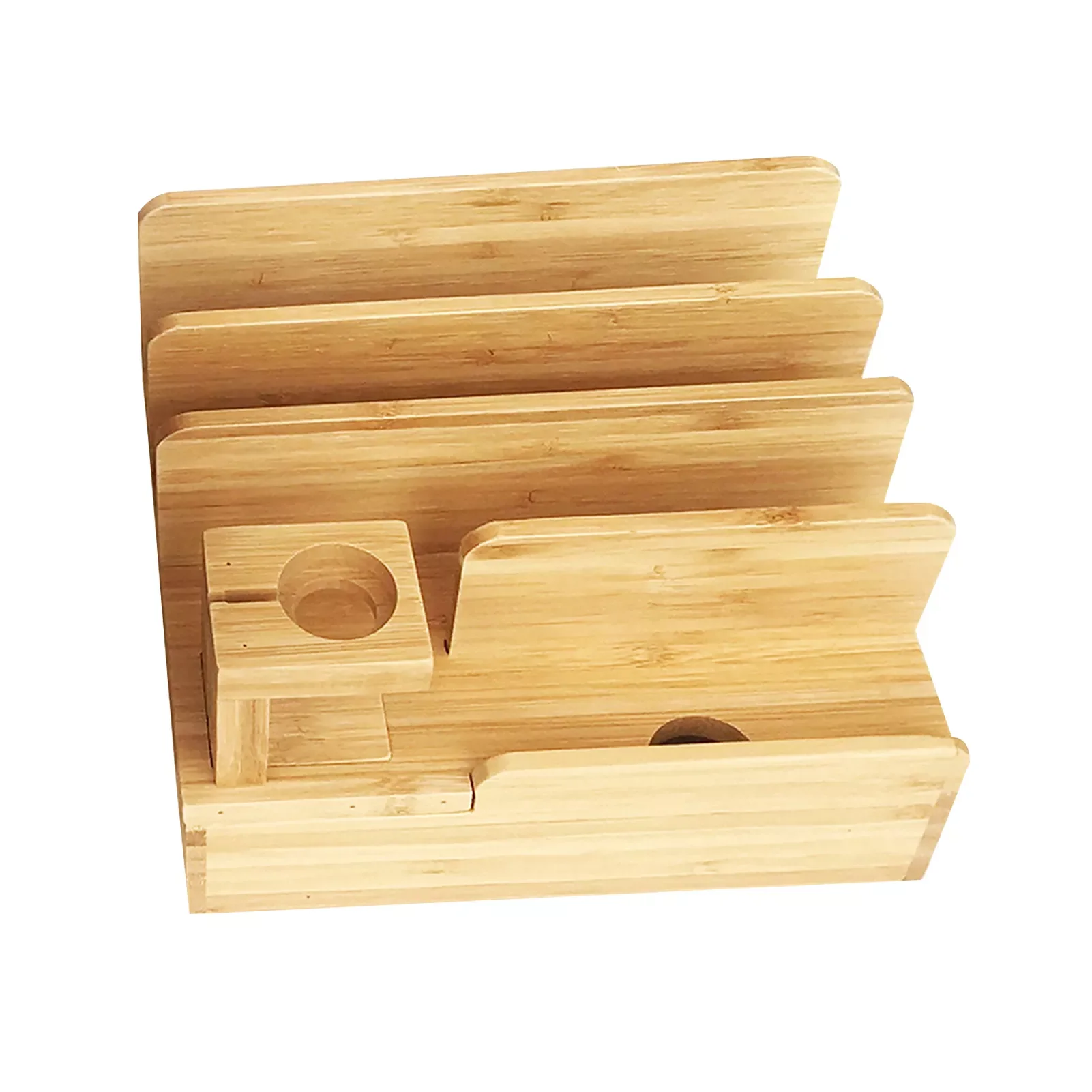 - Soporte para teléfono móvil con múltiples ranuras, estación de acoplamiento de bambú, desmontable, de gran capacidad, regalo