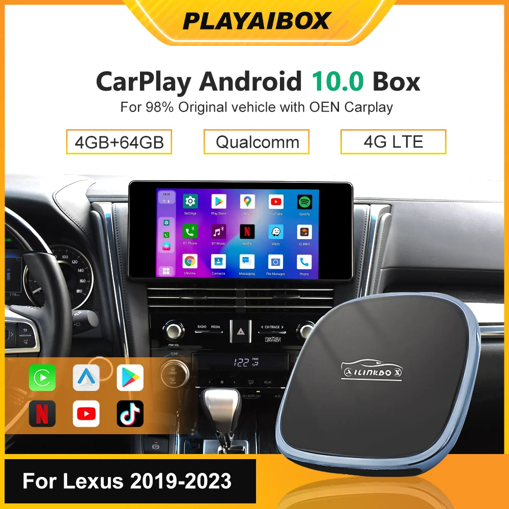 - PLAYAIBOX-reproductor multimedia con Bluetooth para coche, dispositivo inalámbrico con Android, Netflix, YouTube, adaptador Dongle Dual, accesorios para Lexus