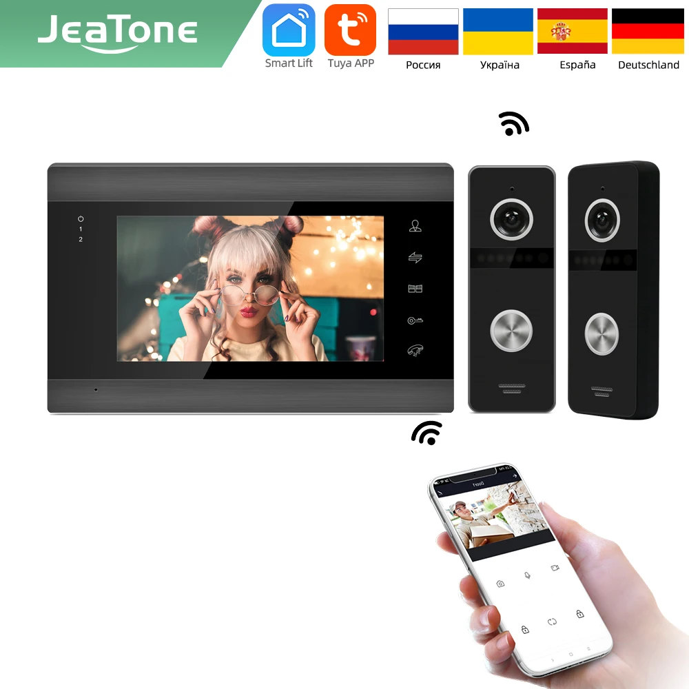 - JeaTone-sistema de intercomunicación inteligente para puerta, videoportero con WiFi de 7 pulgadas para apartamento con cámara AHD, compatible con desbloqueo remoto, llamada y Monitor