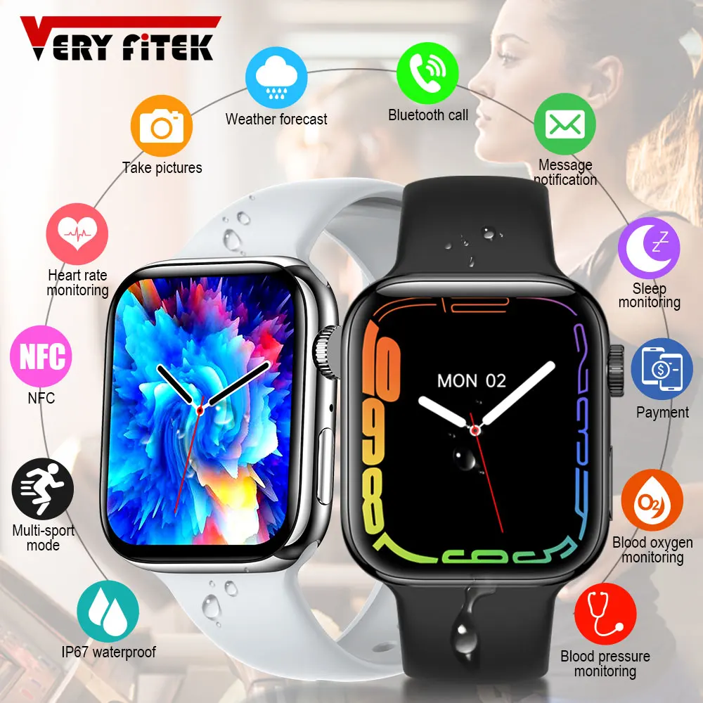 - IWO88-reloj inteligente Serie 7 para hombre y mujer, pulsera con Bluetooth, control del ritmo cardíaco y de la sangre, Dial personalizado, 45mm, NFC, novedad de 2022