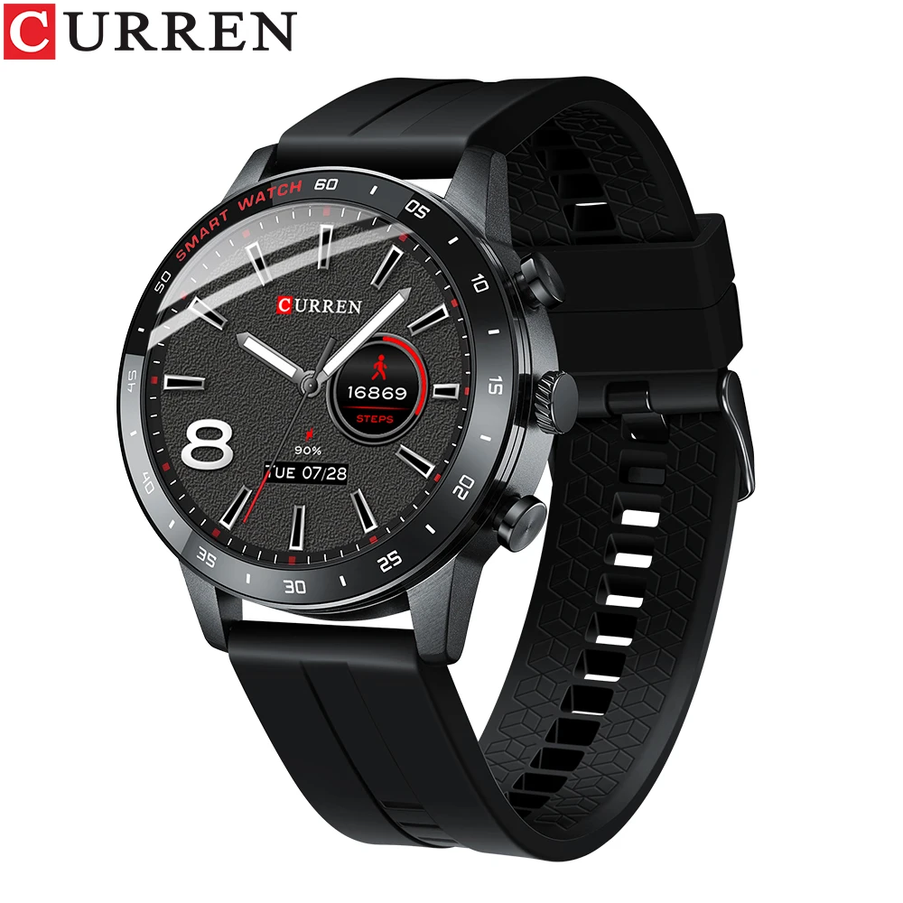 - Reloj inteligente de marca CURREN para hombre, rastreador de actividad física, presión arterial, monitor de ritmo cardíaco, pulsera resistente al agua, reloj inteligente android ios para hombre, reloj para hombre