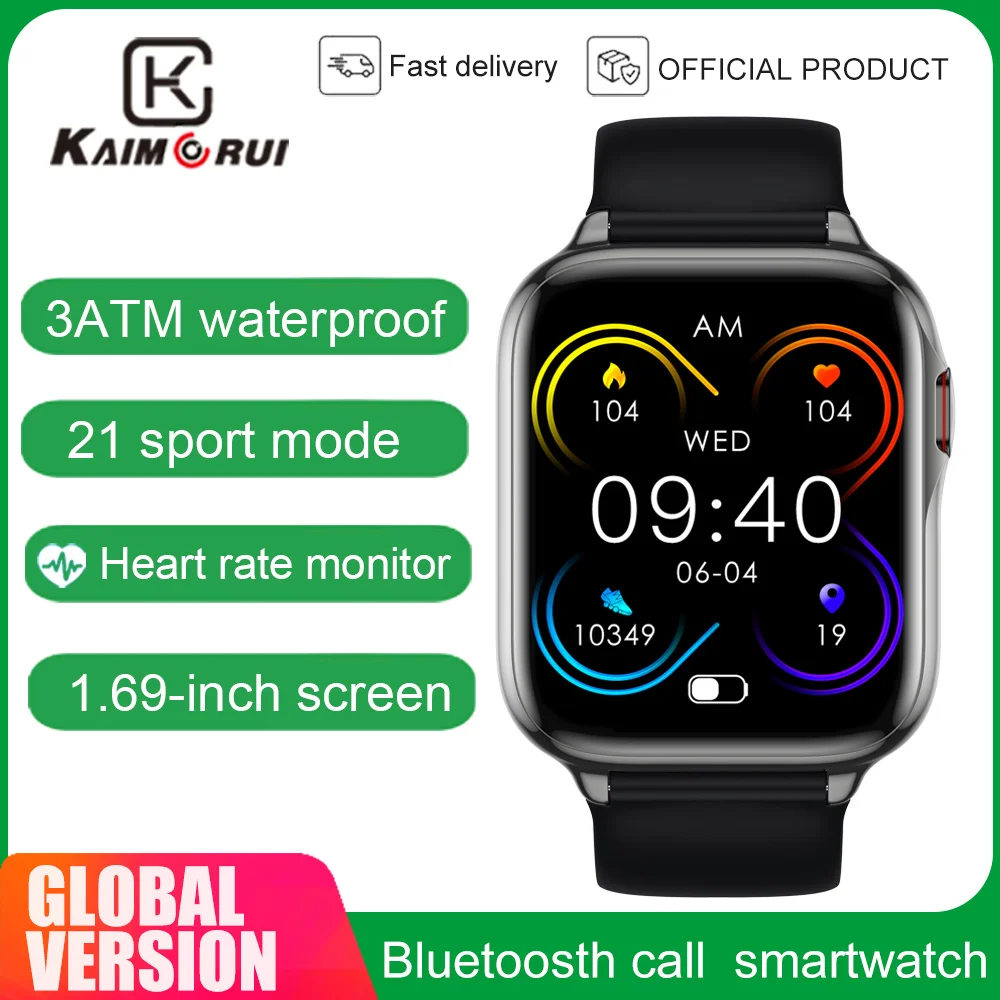 - KAIMORUI-reloj inteligente LW46 para hombre y mujer, accesorio de pulsera resistente al agua 3ATM con control del ritmo cardíaco, llamadas y Bluetooth, compatible con Android e ios, 1,69 pulgadas