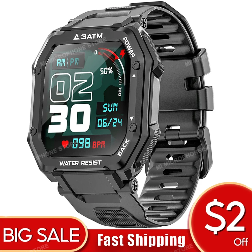 - Reloj inteligente C16 para hombre y mujer, pulsera deportiva resistente al agua hasta 3ATM, con Monitor de presión arterial de 1,7 pulgadas, para deportes al aire libre