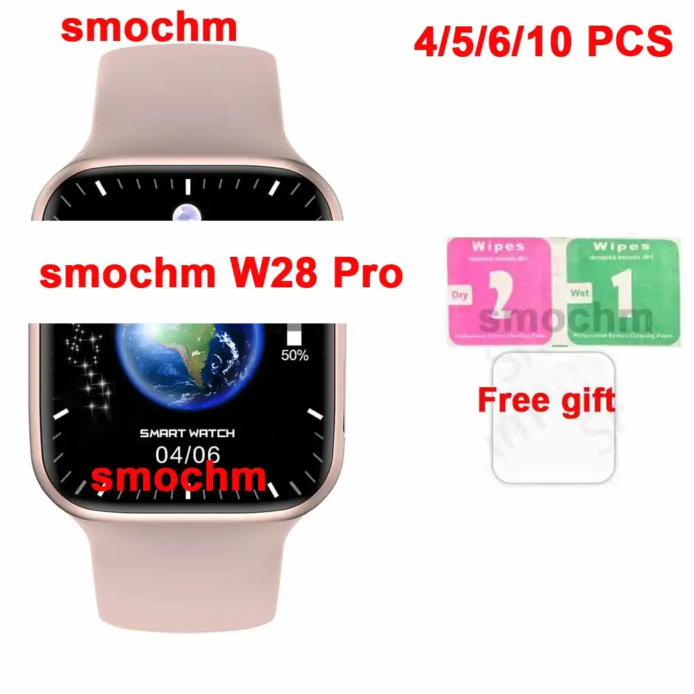 - Smochm-reloj inteligente W28 Pro de 4/ 5/ 6/ 10 unids/lote, Serie 8, pantalla personalizada, cargador inalámbrico de 45MM, llamadas por Bluetooth, 1,95