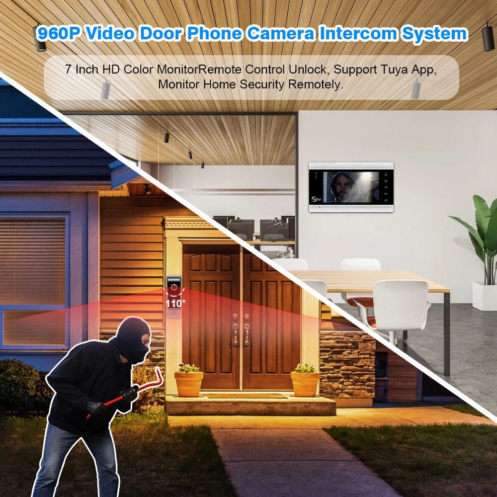 - Intercomunicador de vídeo inteligente Tuya 960P/AHD, timbre de gran angular con cámara para vigilancia de seguridad de apartamentos, protección de pantalla de 7 pulgadas