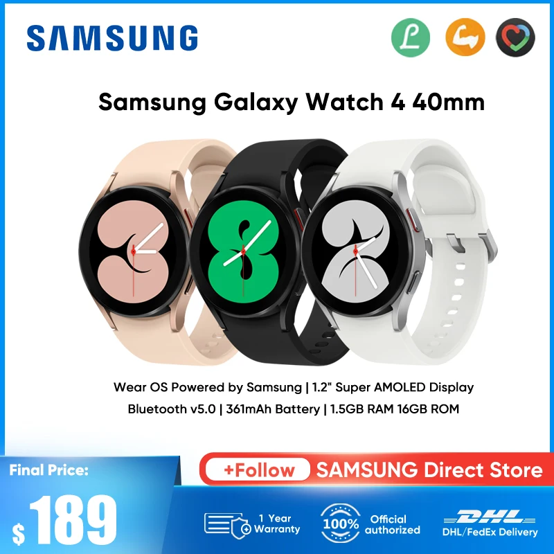 9. Samsung reloj inteligente Galaxy Watch 4, pulsera con Bluetooth, 40mm, pantalla Super AMOLED, seguimiento de Fitness, medición de la presión arterial Product Id: 1005004568837100 |