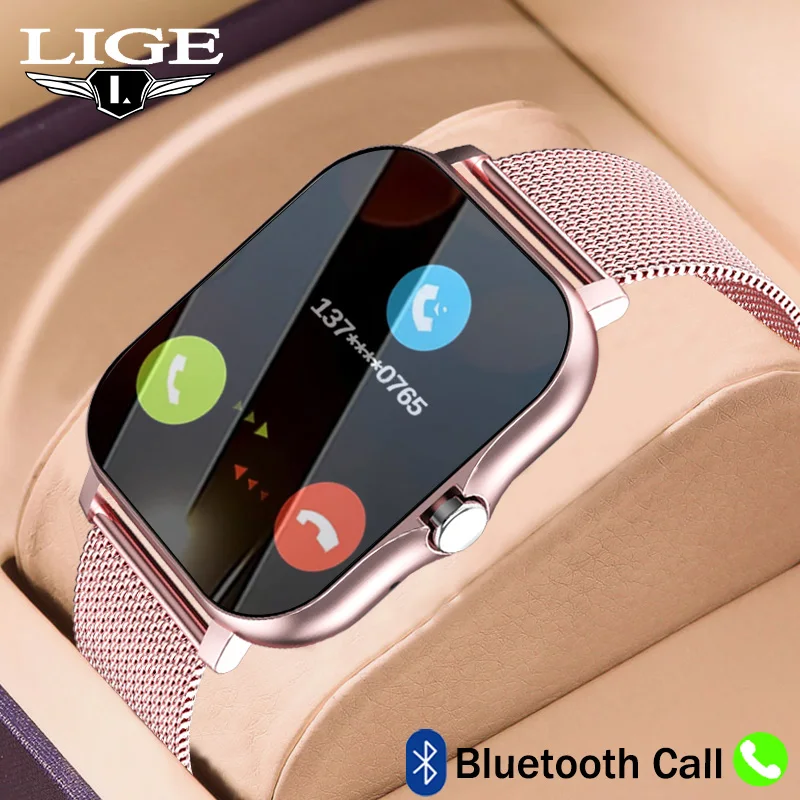 - LIGE-reloj inteligente para mujer, accesorio de pulsera resistente al agua con Bluetooth, llamada, Monitor de presión arterial, personalizado, para regalo