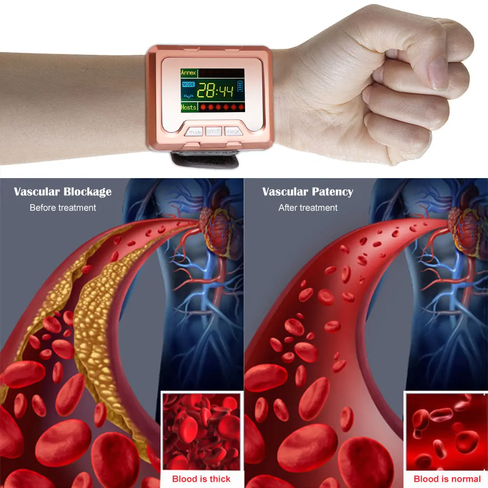 - Reloj de pulsera inteligente para terapia láser, dispositivo médico de bajo nivel de 650 Nm para reducir la presión arterial y el tratamiento de la Diabetes