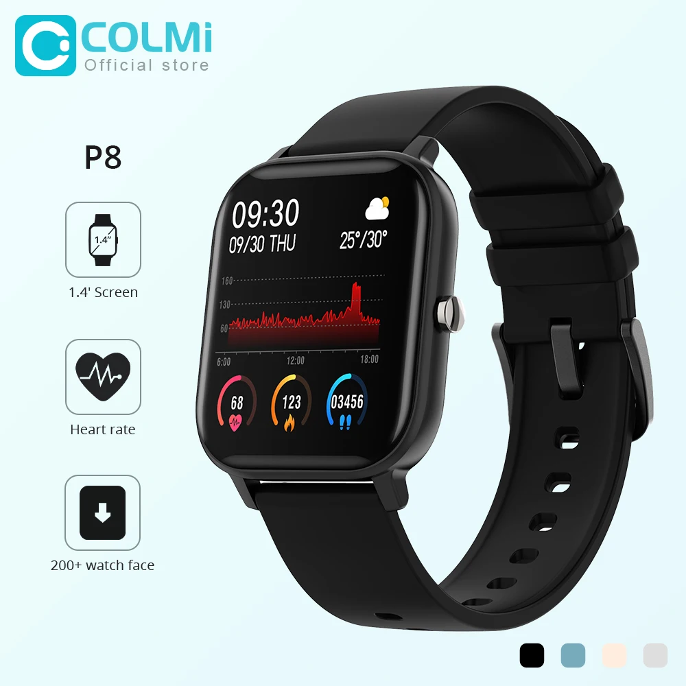 - COLMI-Reloj inteligente P8 para hombre y mujer, dispositivo de control de actividad, presión sanguínea y pantalla táctil, 1,4 pulgadas