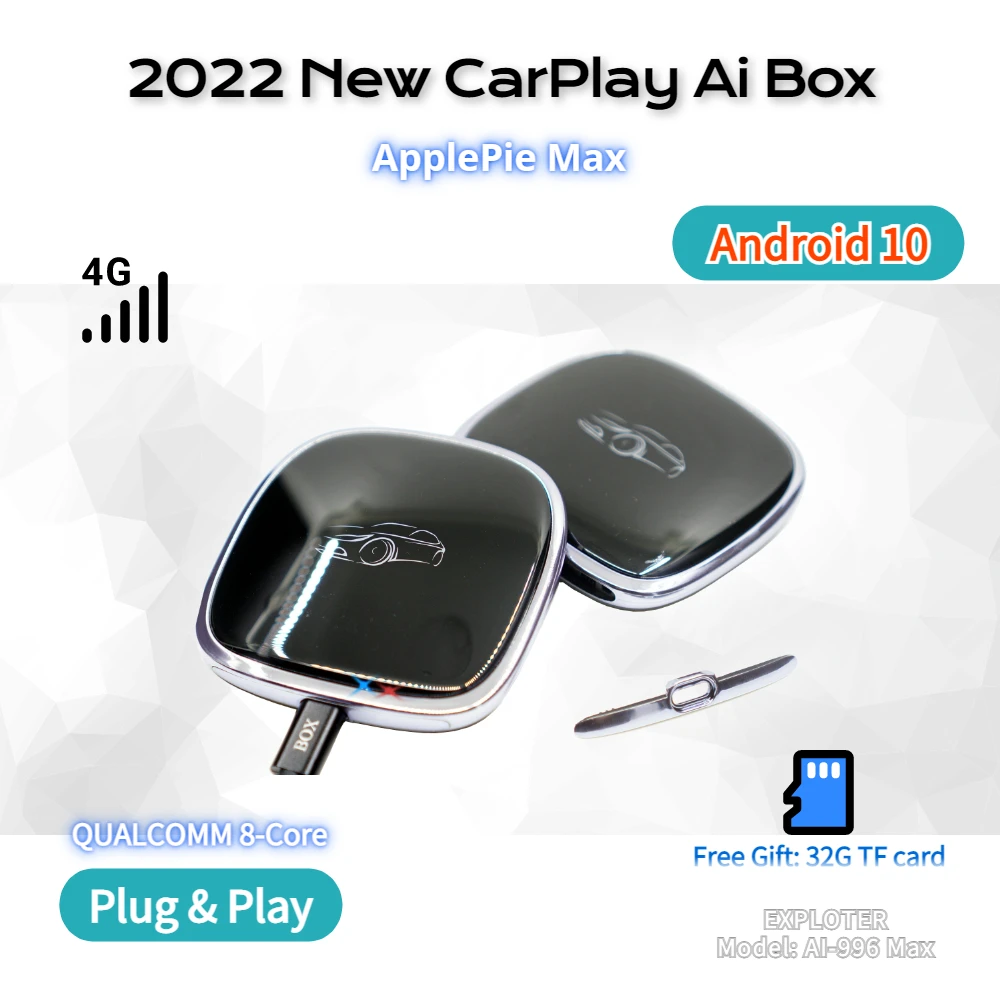 - Applepie Max-CarPlay inalámbrico, dispositivo con Android 10, Qualcomm, OEM, Apple CarPlay, Smart, DIY, Mirroring