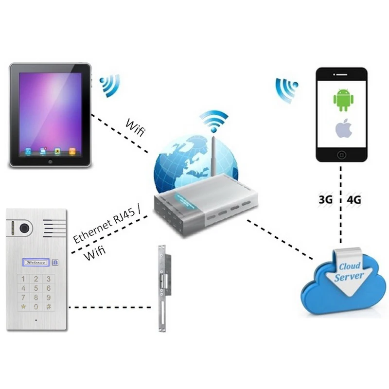 - Timbre inalámbrico para teléfono inteligente y tableta, intercomunicador con pantalla táctil, Wifi, 3G/4G, cámara IP, compatible con IOS y Android