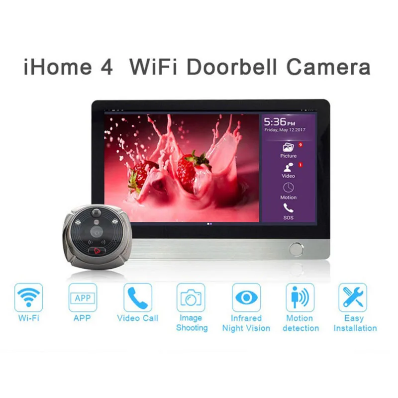 11. Rollup intercomunicador inteligente Ihome4 para el hogar, visor de puerta, mirilla, cámara IP de vídeo inalámbrica, ojo, WIFI, timbre Visual, vigilancia remota Product Id: 32976570808 |