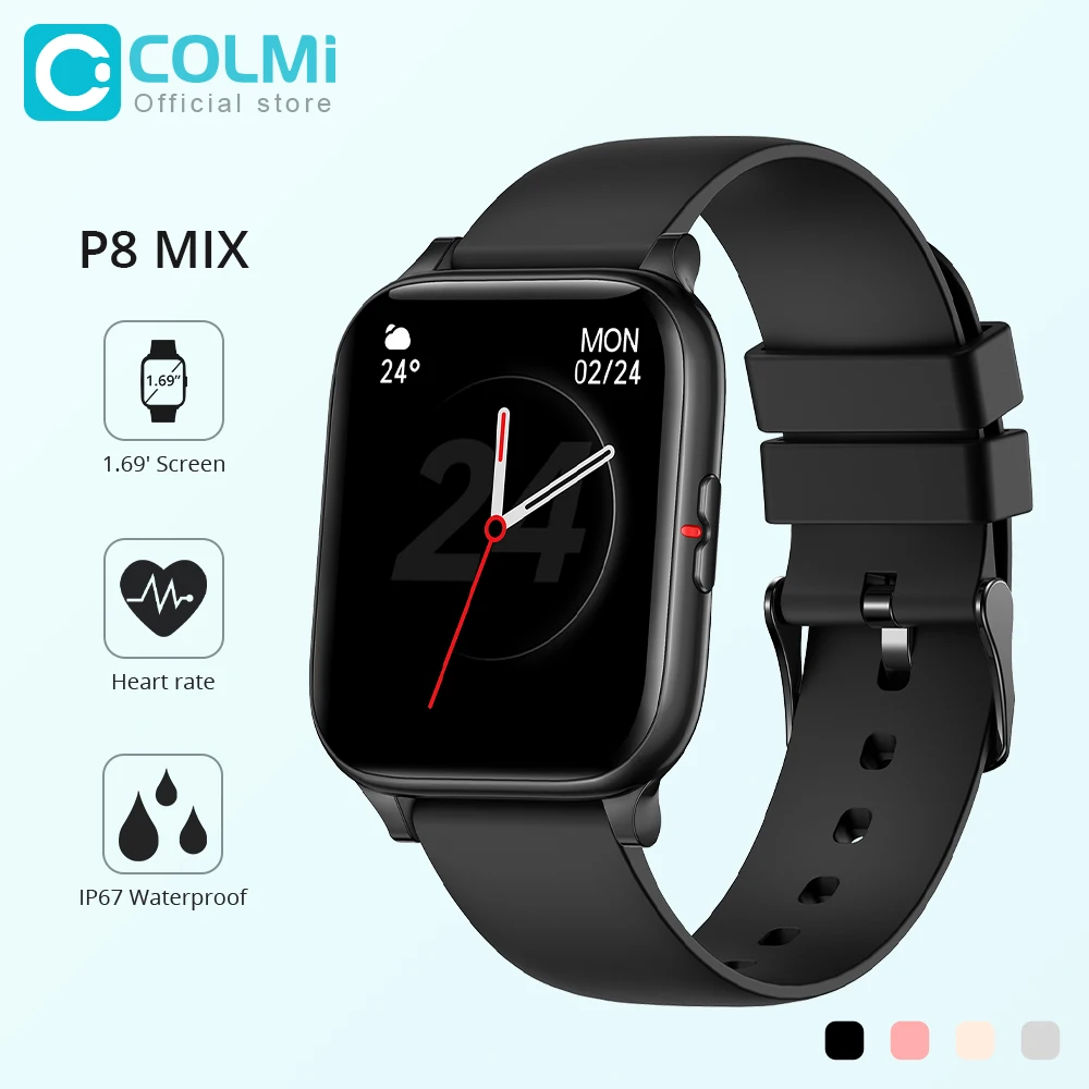 - COLMI-Reloj inteligente para hombre y mujer P8 Mix, smartwatch con pantalla de 1,69 pulgadas resistente al agua IP67, pulsera con control del ritmo cardíaco y seguimiento de la actividad física, para iPhone Plus