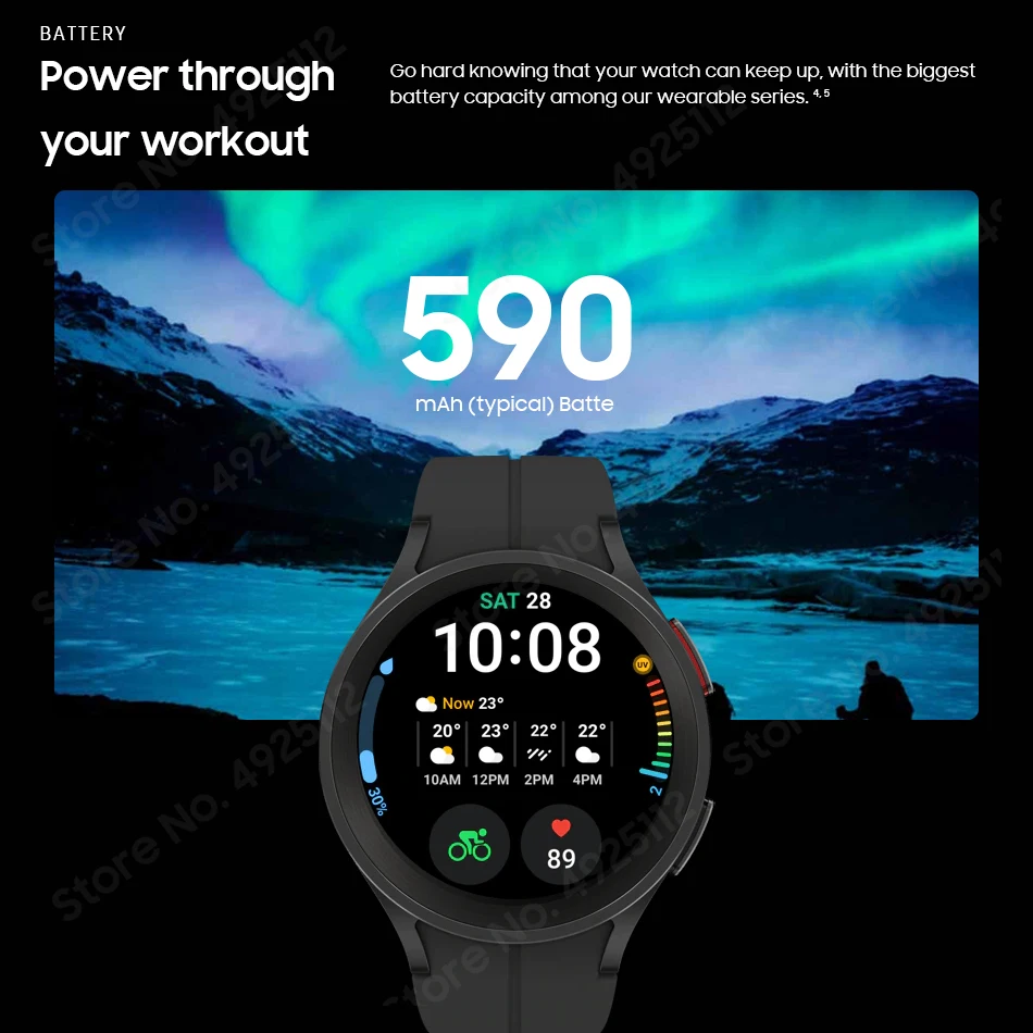 - Samsung-reloj inteligente Galaxy Watch 5 Pro, reloj inteligente LTE R950 de 45mm, pantalla súper AMOLED de 1,4 pulgadas, Sensor de frecuencia cardíaca y oxígeno en sangre, 590mAh, GPS, WiFi