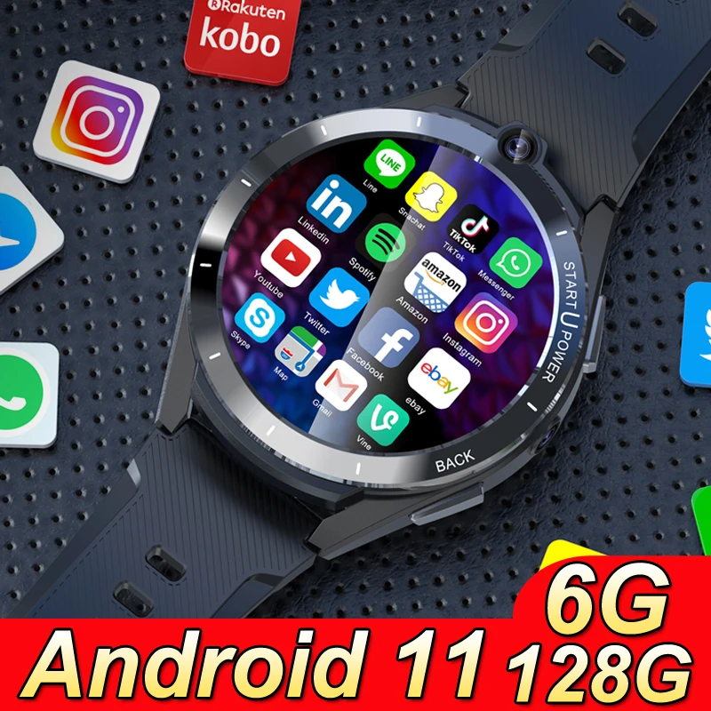 - Reloj inteligente 4G Lte para hombre, dispositivo con tarjeta SIM desmontable, 4GB de RAM, 64GB de ROM, pantalla grande de 2300mAh, cámaras duales de 2,88 pulgadas, WiFi, GPS, deportivo