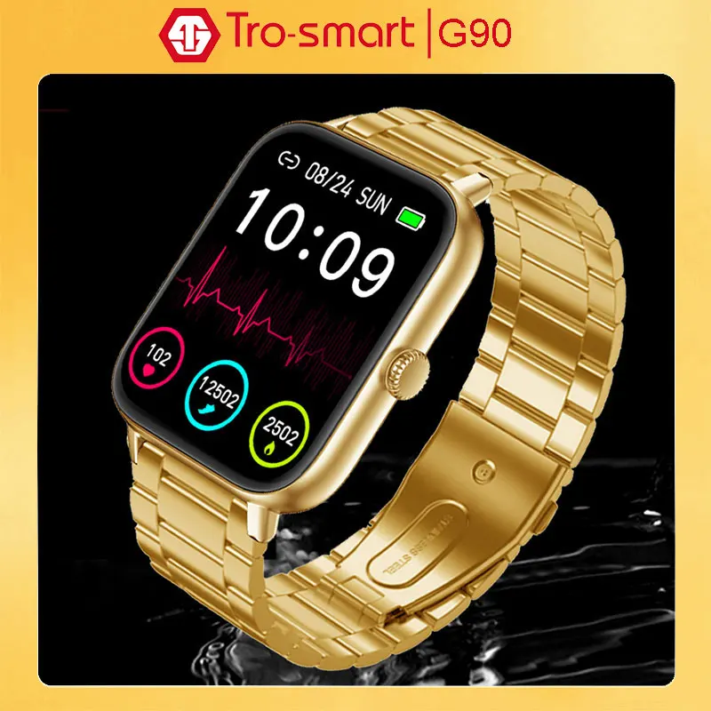1. Reloj inteligente dorado para hombre y mujer, pulsera electrónica para Android e IOS, rastreador de Fitness, Trosmart G90